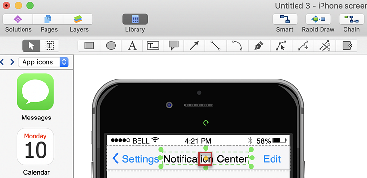 - Add the iPhone interface elements to the mock-up by dragging them from library to the document page.