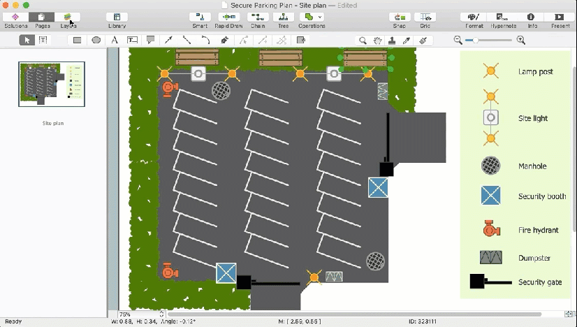 - Open a ConceptDraw DIAGRAM new document, select Site Plans section and open proper libraries.