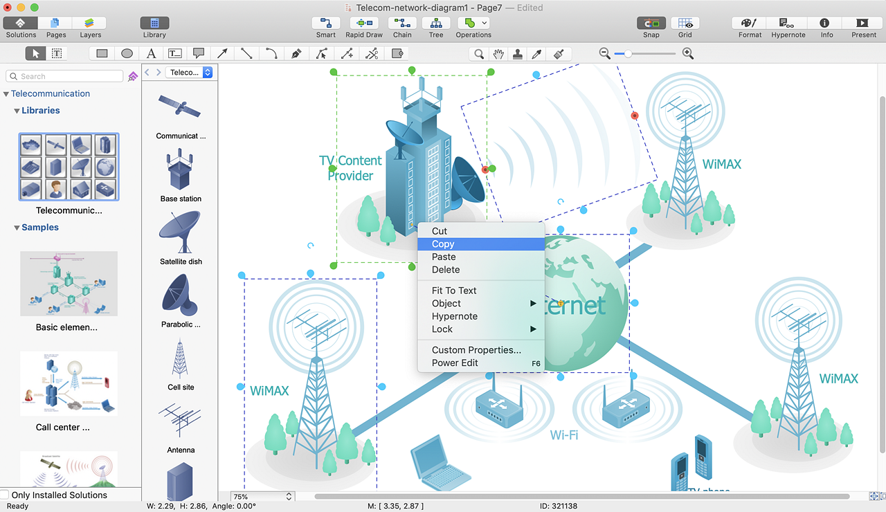 Making a telecommunication network diagram involves many specific elements of telecommunication technology that can be managed using ConceptDraw DIAGRAM. The ability to design telecommunication network diagrams quickly and easily contains in the Telecommunication Networks Diagrams solution. The telecom network diagram may be the part of the network documentation that should be presented as MS Word document. In this case, the best way is using the advanced copy-and-paste functionality of ConceptDraw DIAGRAM.