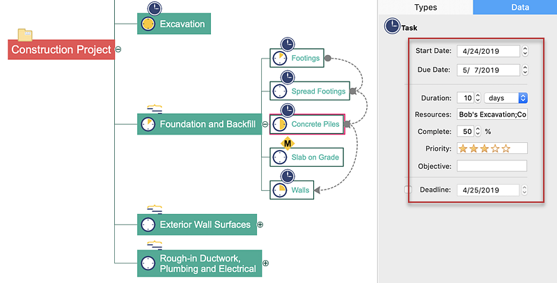 Topics that are copied from ConceptDraw MINDMAP and pasted into a Gantt Chart view of ConceptDraw PROJECT become a project's tasks. Task parameters are obtained from the Topic Data information.