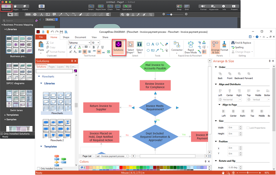 Alternatively, you can access the solution’s content from the Solutions panel within the application for which the solution is intended. Result: Now the solution is available for use with an appropriate ConceptDraw product. To be effective at the learning curve with the exact solution, we’d recommend you continue with Helpdesk articles for this solution. |