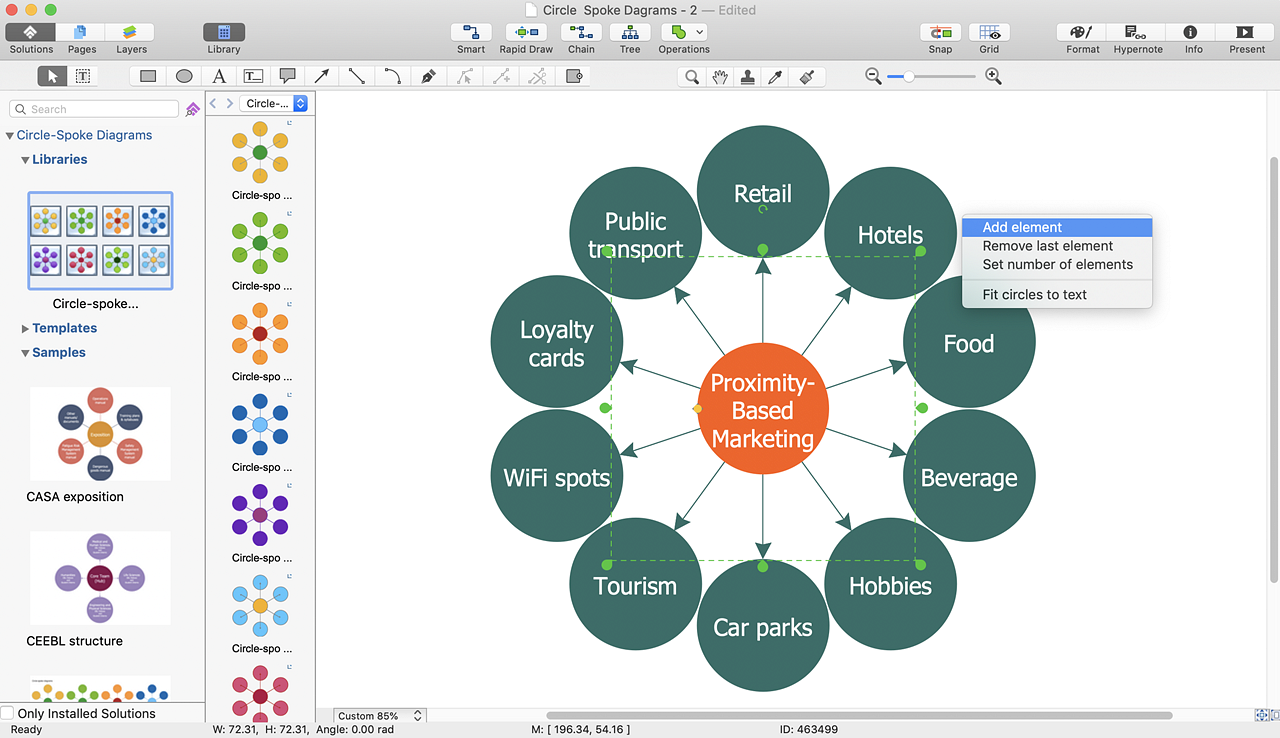 How to Add a Circle-spoke Diagram to PowerPointA circle-spoke diagram is a tool that is often used throughout the marketing sphere. The ability to create this form of a diagram is contained within the Circle-Spoke Diagrams solution. Presentations serve as valuable marketing tools. A PowerPoint presentation featuring marketing data, that uses diagrams as a visual aid, increases the presentation's ability to inform and engage.