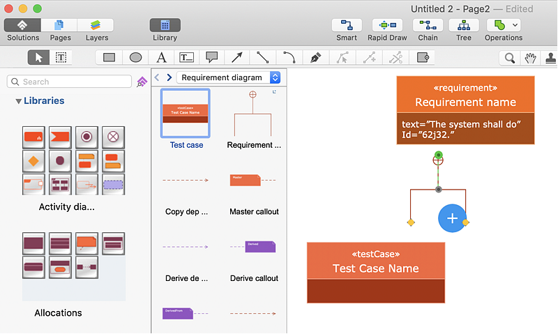 How to Create a SysML DiagramSystems Modeling Language (SysML) is to system engineers what UML is to software engineers. Unlike UML, which based on standardizing the software systems description language, SysML describes much more variety of systems, that can include staff, hardware, facilities or electrical elements. SysML has 7 diagram types that are divided into behavioral and structural sub-types. The SysML solution for ConceptDraw DIAGRAM contains 13 general-purpose modeling language libraries designed to describe systems engineering applications. The SysML solution supports the specification, analysis, design, confirmation, and validation of a wide range of systems and systems-of-systems.