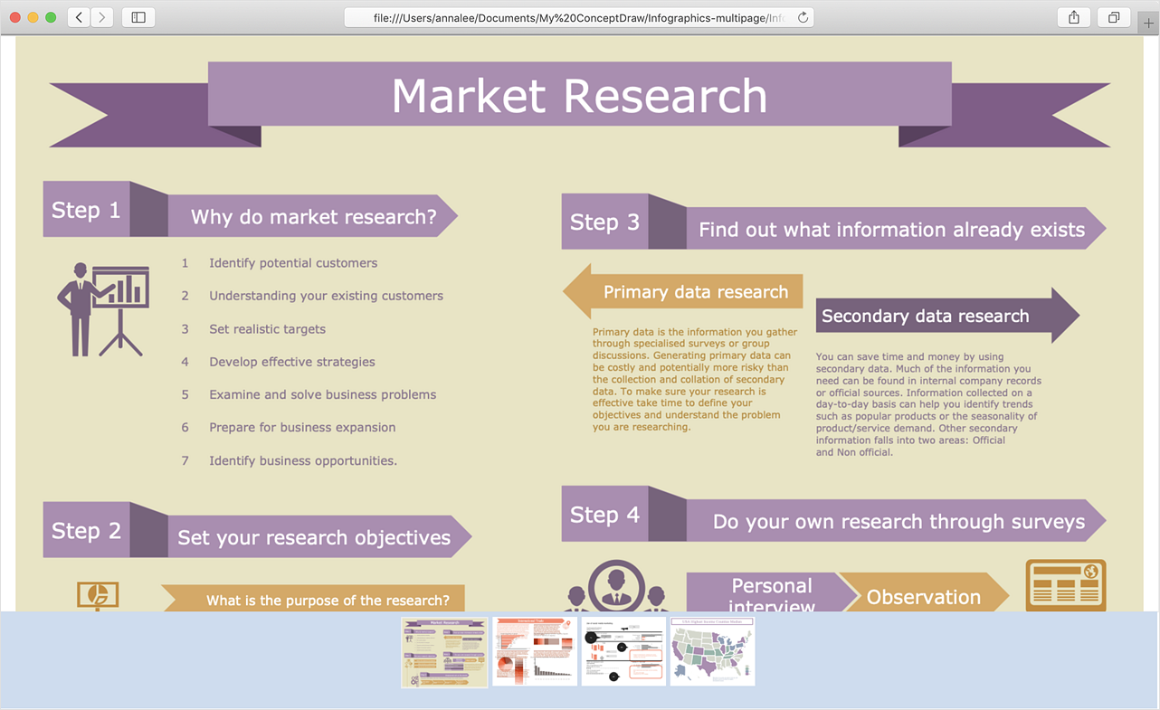 Since ConceptDraw DIAGRAM supports exporting to HTML, you can easily make a web page from your ConceptDraw drawing. ConceptDraw DIAGRAM adds the HTML tags that are needed to display your drawings in a Web browser, so all you have to do is design its appearance. For example, you can create highly informal infographics using ConceptDraw tools and then export it to a ready-to-publish Web page.