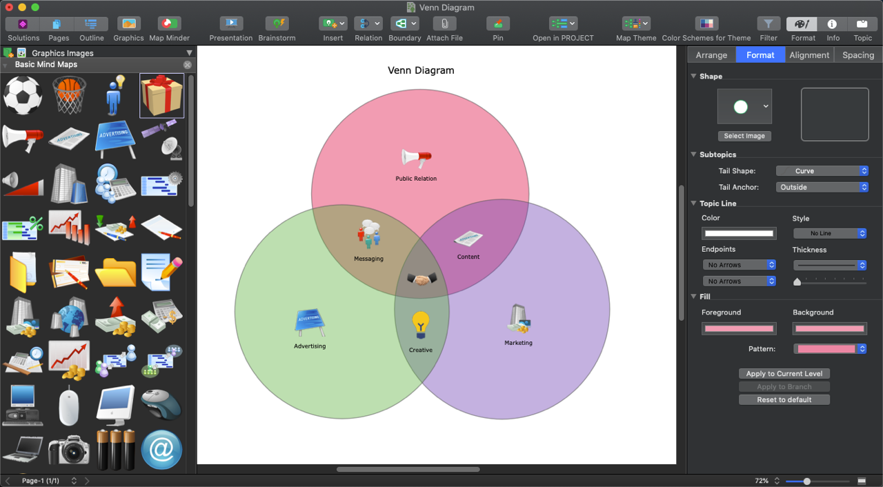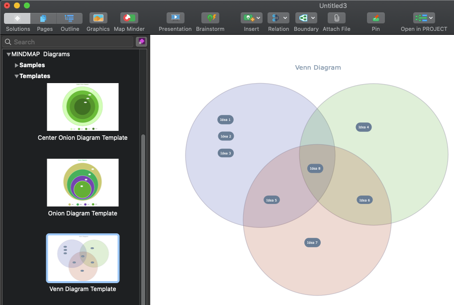 How to Plan Projects Effectively Using ConceptDraw MINDMAPMind maps have many practical applications in project management. Commonly mind maps are used to brainstorm ideas, schedule tasks; organize and present information. ConceptDraw MINDMAP offers a solution that expands mind mapping capabilities in project management. MINDMAP Diagrams solution provides mind map templates and samples for building Venn diagrams, Onion charts, Matrixes, and some other charts popular in project management and marketing practices. A Venn diagram is used to show the relationships between data arrays in a view of circles overlapped. Venn diagrams are good for visualizing similarities and differences when comparing different datasets. In a Venn diagram, circles (usually 2 or 3) are used to represent each data set. Inside each circle is placed a list of characteristics that are specific to this particular data set. Characteristics shared between different datasets are listed in the space where the circles overlap. MINDMAP Diagrams solution is available for purchase and download in the Project Management section of the ConceptDraw STORE's Solutions tab. Also, ConceptDraw MINDMAP version 14.1 or later is required.