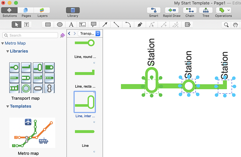 The ability to create a metro map in ConceptDraw DIAGRAM is supported by the Metro Map solution. Using ConceptDraw Metro maps solution, you can create metro maps, route maps, and various transport schemes. This solution extends ConceptDraw DIAGRAM with a library that contains 37 vector shapes that can be used when drawing metro maps, route maps and various transport schemes.