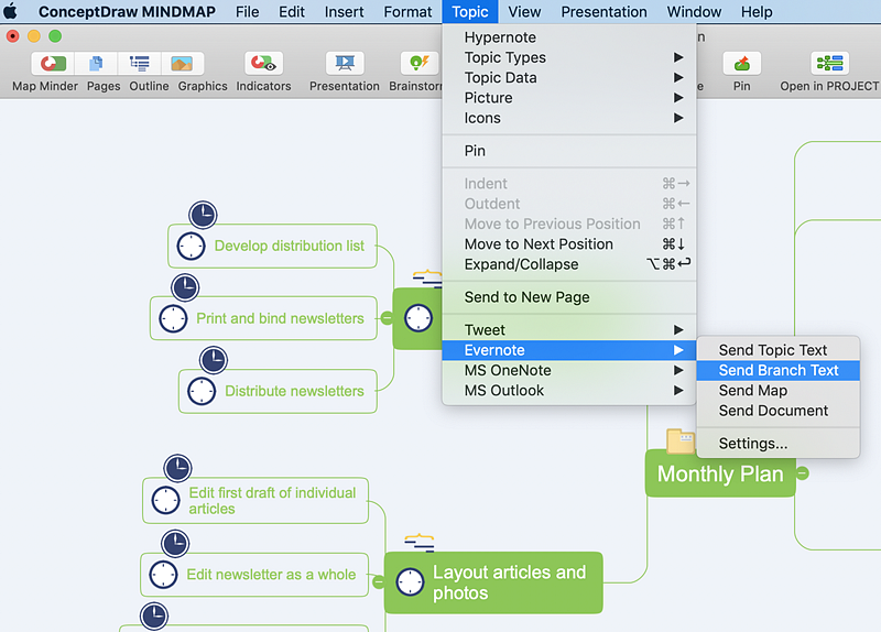 - ConceptDraw MINDMAP supports sending the information from your mind map to your Evernote account.