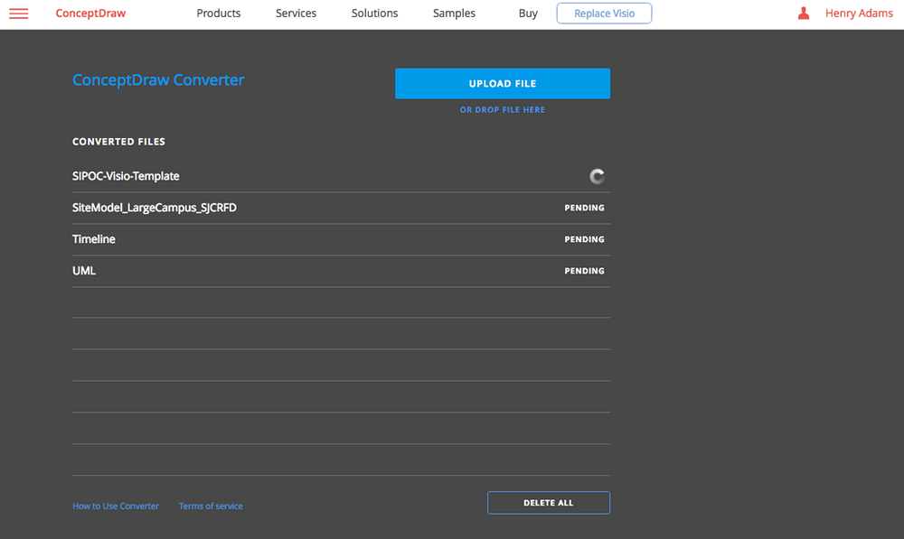ConceptDraw Converter transfers files from Visio binary file format VSD into ConceptDraw DIAGRAM (CDDZ) files by means of the web-based software tool. To use our free online conversion service follow these simple steps.
