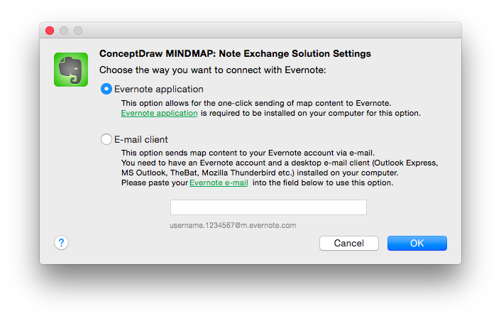 How to Get Started with ConceptDraw Solution for EvernoteConceptDraw MINDMAP provides the ability to place ConceptDraw mind maps on Evernote with the press of a button, and then view them anywhere in the world, on any computer or mobile device. The Note Exchange solution lets you publish content from ConceptDraw MINDMAP to your Evernote account. To get started with Note Exchange: