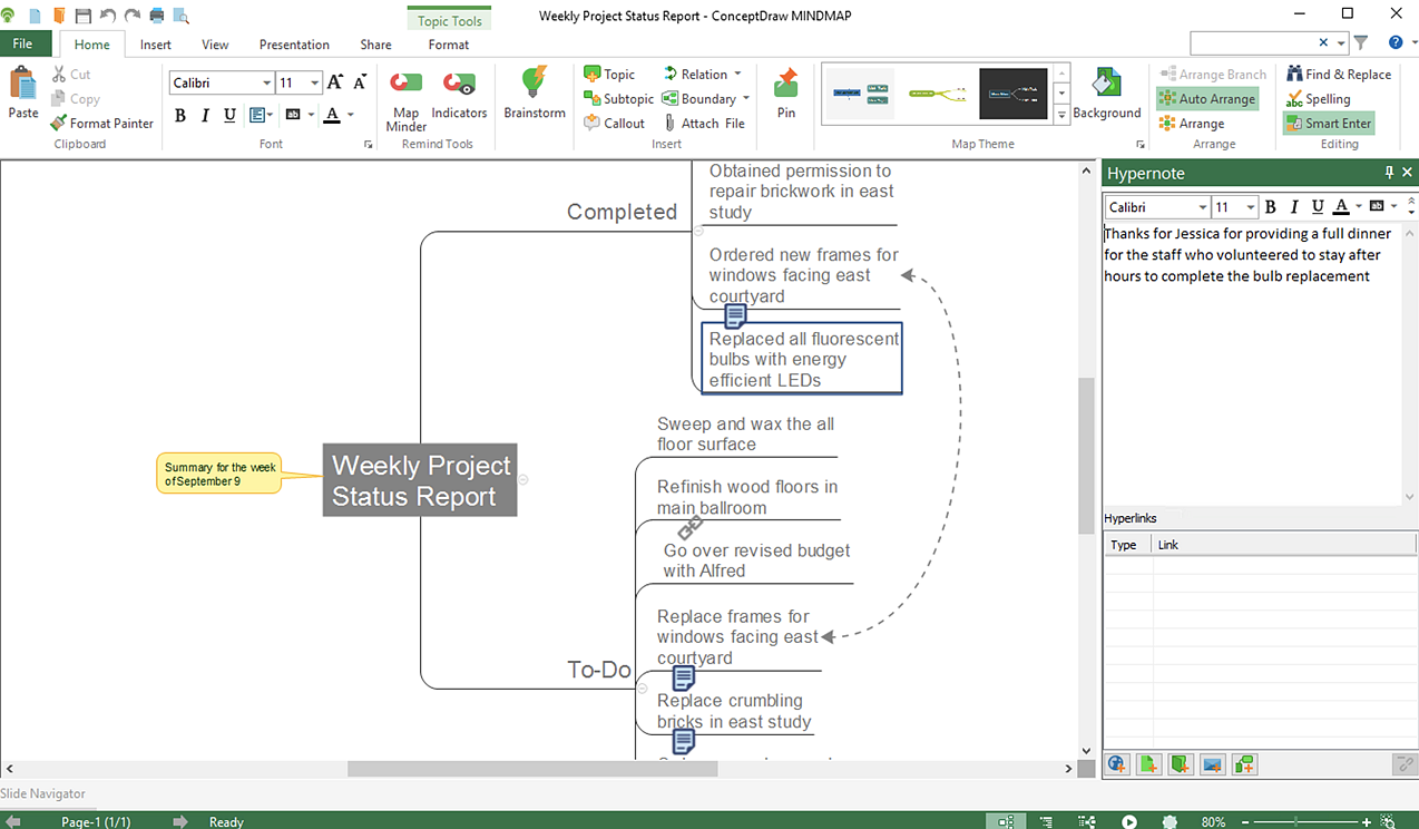 Result: MS Word document created from ConceptDraw MINDMAP document. Now you can share your mind map content with MS Word users.
