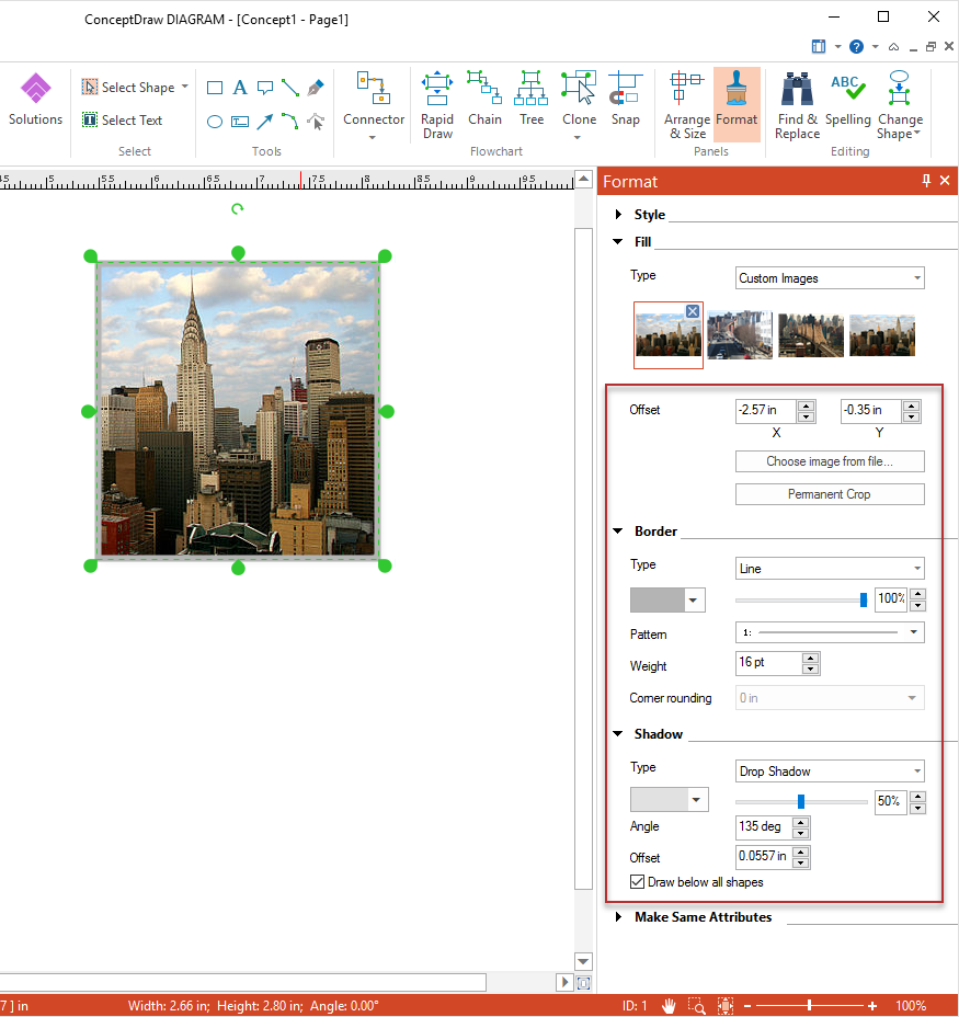 Result: ConceptDraw DIAGRAM offers the possibility to add images to your drawings along with several options for changing the way images appear in a document. Using these capabilities you can make short work of creating complex illustrated diagrams. |