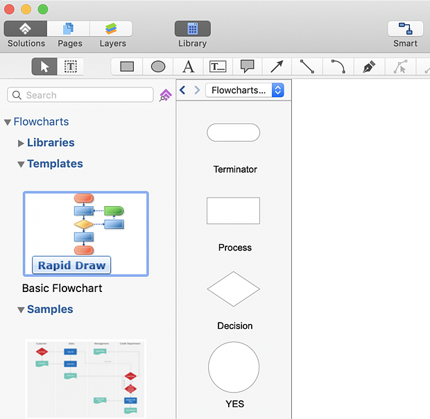 Software for Flowchart DiagramsGraphic visualization of any complex process flow is a very common practice among business professionals. To make business flow diagram clear to anyone, there were developed a special collection of standard flowchart symbols, that will notate any element of any business process flow. The best practice of creating flowcharts using the software for flowchart diagrams supported with special vector libraries is using ConceptDraw DIAGRAM and its Flowchart solutions. To start creating your flow chart, it's better to open a special template.