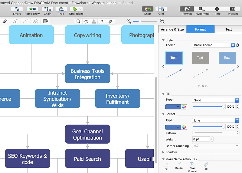 Result: Now your flowchart is ready! With ConceptDraw DIAGRAM you can quickly and professionally depict any workflow, business process or other processes flows. |