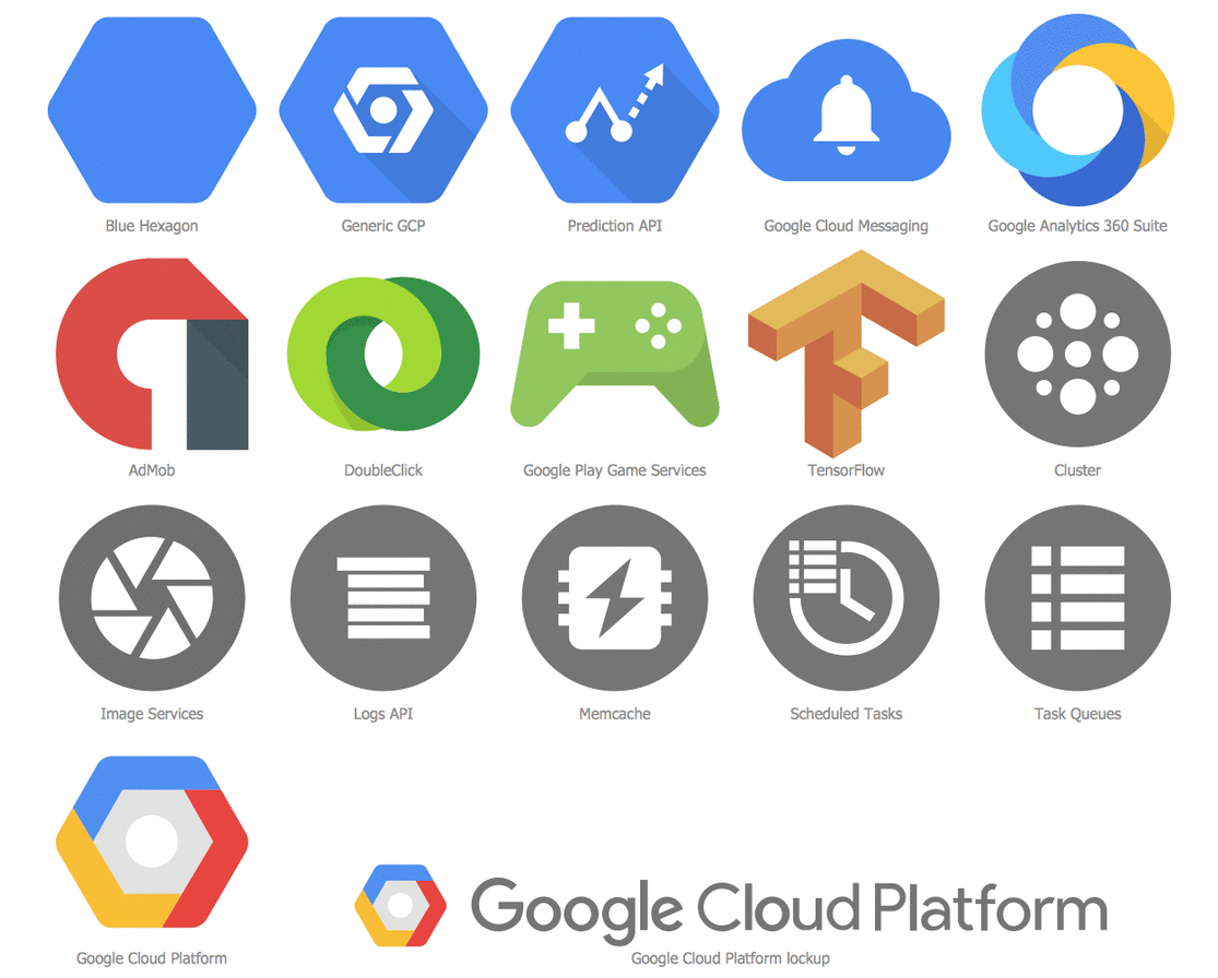 The Google Cloud Platform (GCP) Solution is available at no charge to users of ConceptDraw PRO v11 and Office v4, via Solution Park.