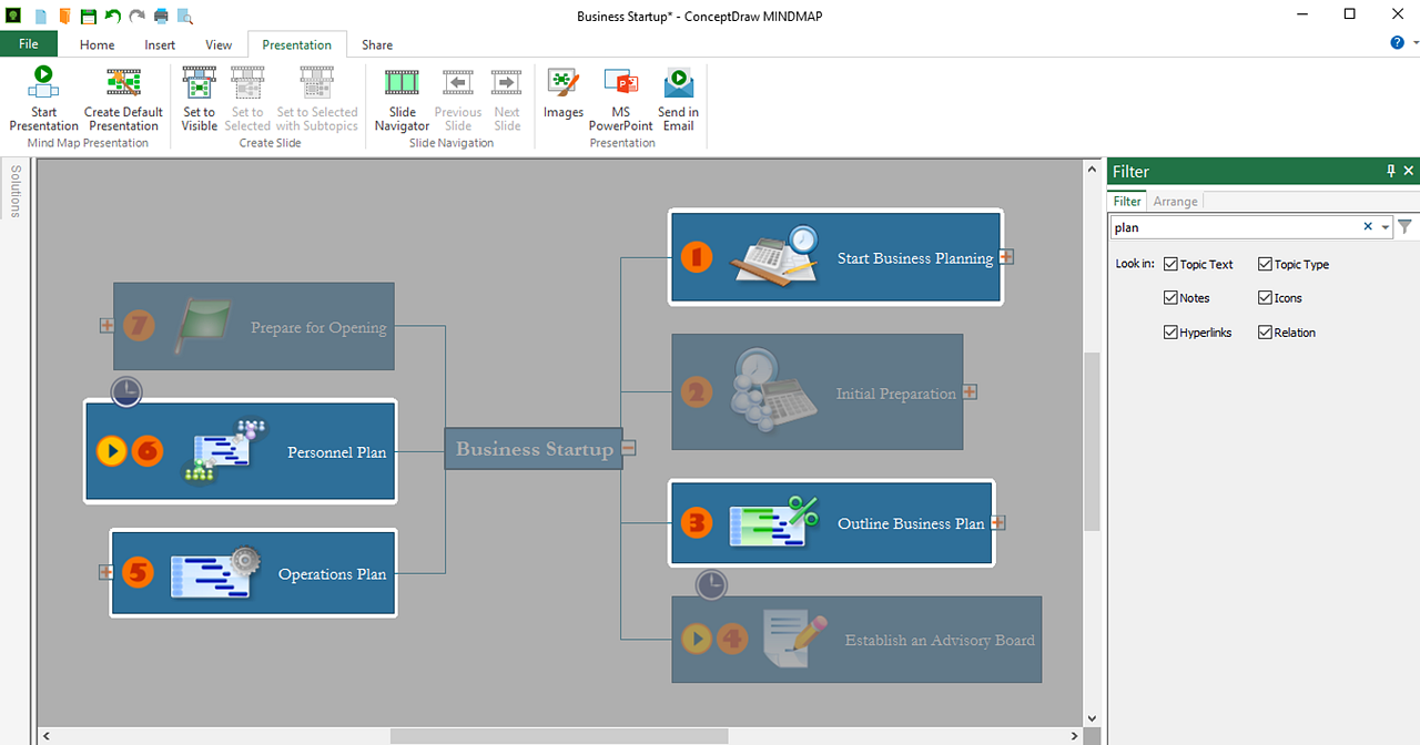 Each presentation style in ConceptDraw MINDMAP is simple to prepare and present.