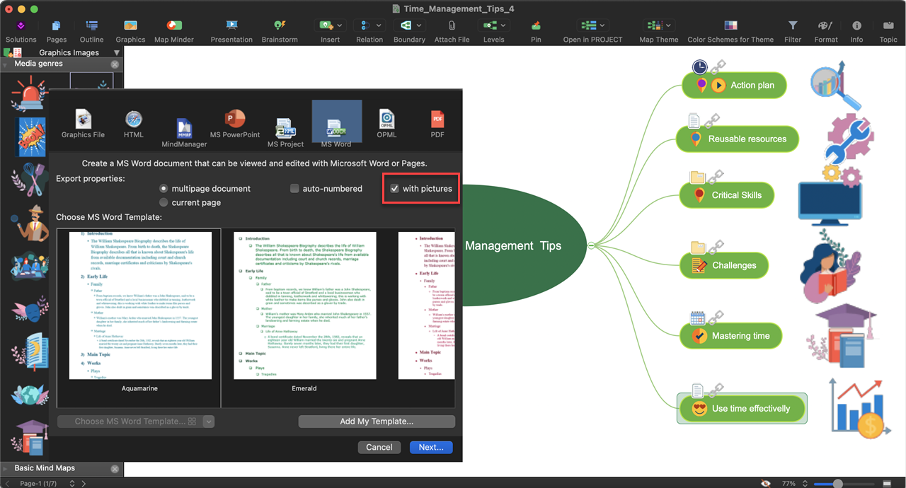 Export to Word improved: If a topic has an attached image, it will also appear in the MS Word document when exported, just like images inserted into the topic.