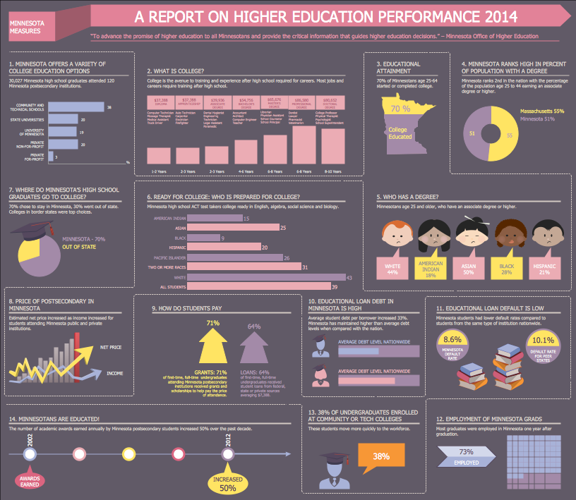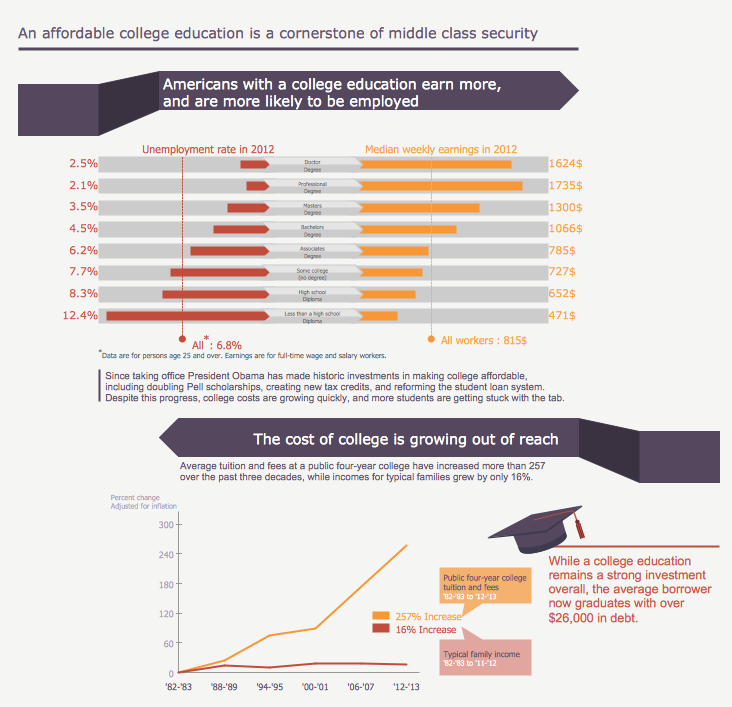 Samples of vector educational infograms are created using ConceptDraw DIAGRAM diagramming and vector drawing software enhanced with Education Infographics solution from the Business Infographics area of ConceptDraw Solution Park.