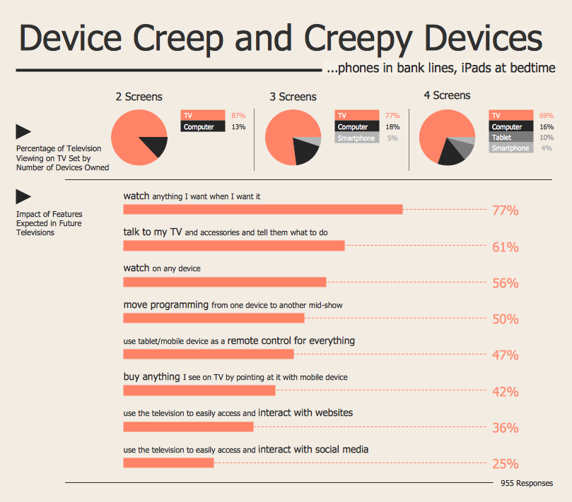 Marketing Infographics sample: Multi-screen behaviors by type of TV program.