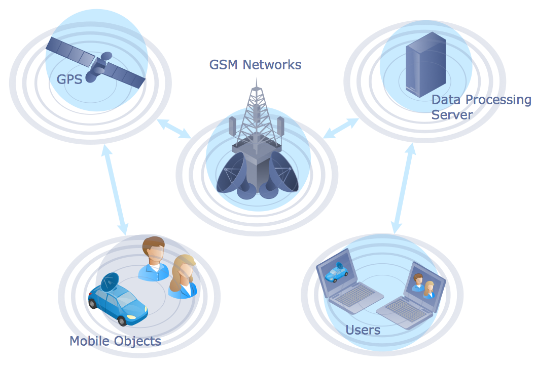 Telecommunication Network Diagram sample: Global Positioning System (GPS) operation diagram.