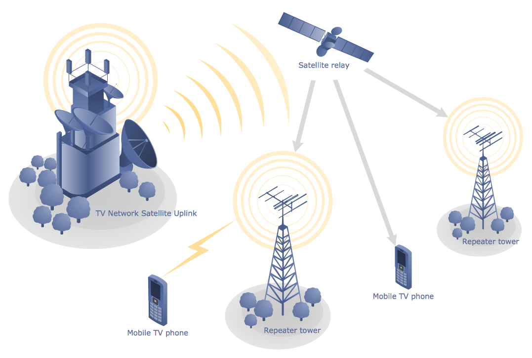 Telecommunication Network Diagram sample: Mobile TV network diagram.