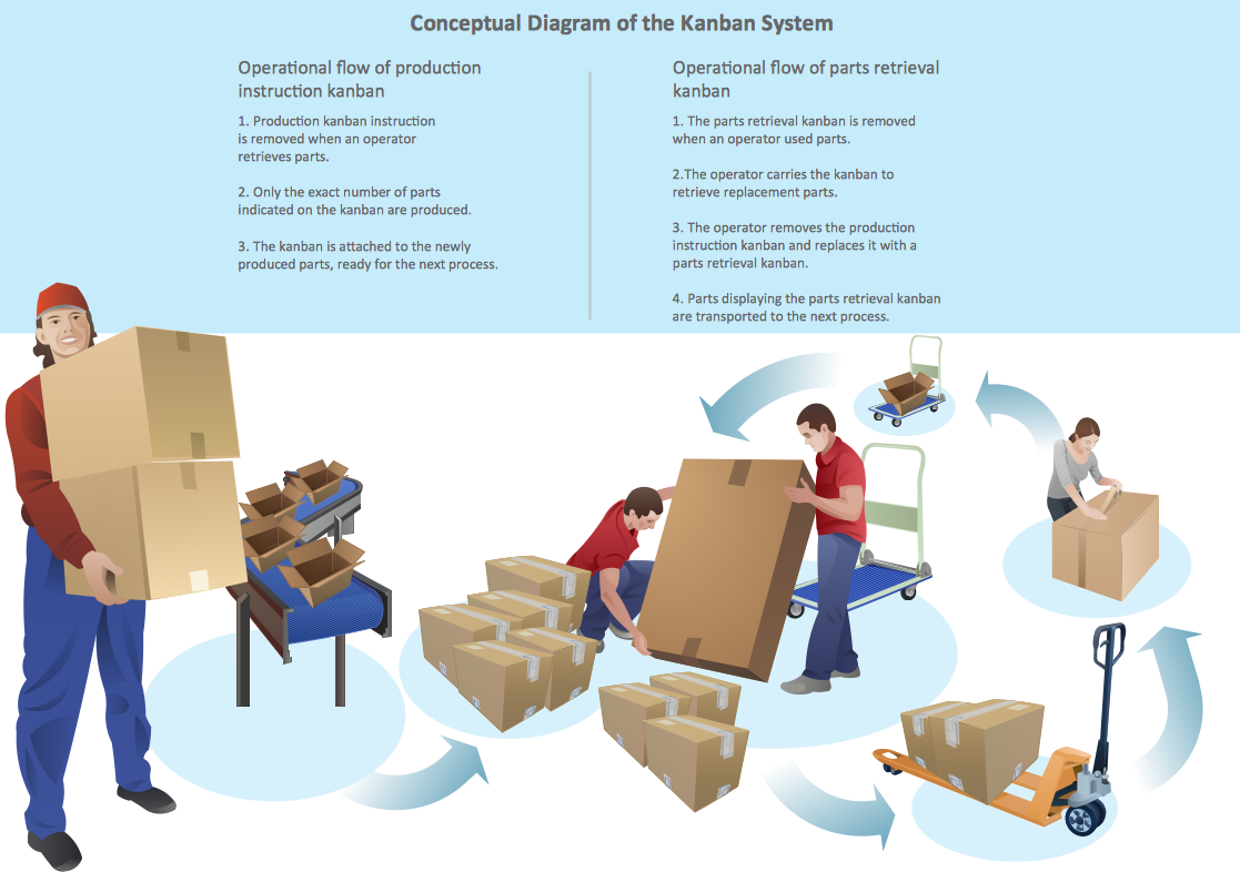 Manufacturing and Maintenance illustration example: Conceptual diagram of the Kanban system.