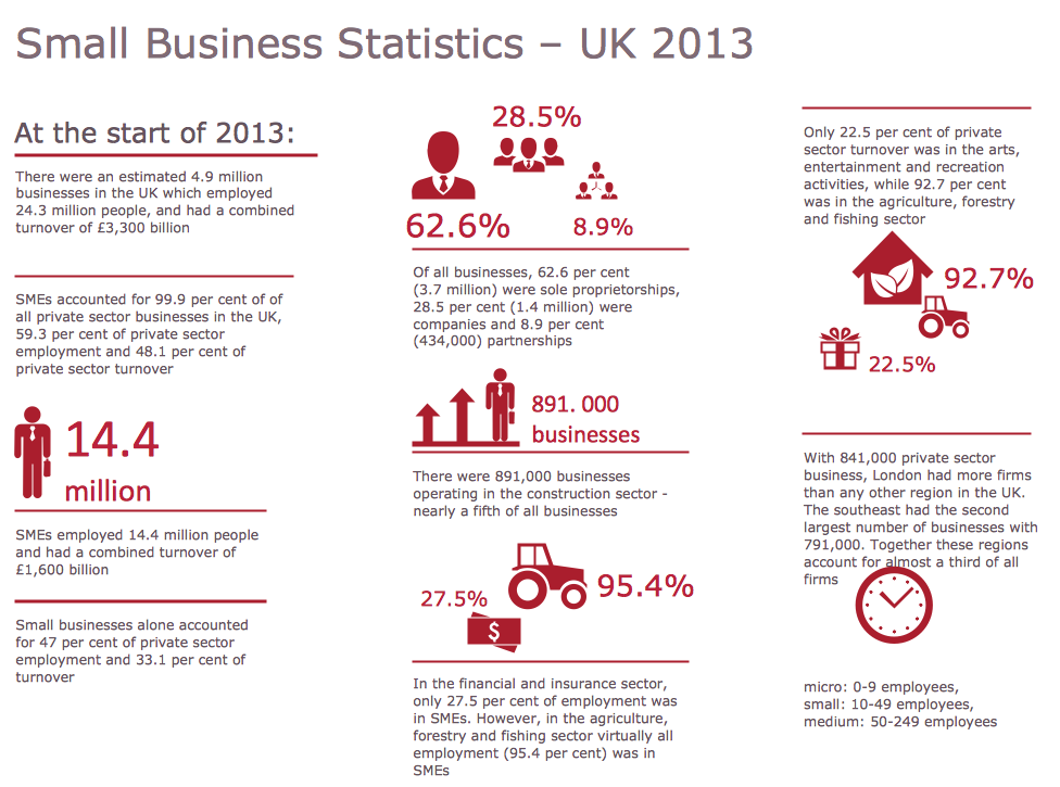 Pictorial Infographics sample: Small business statistics (UK 2013).