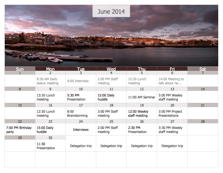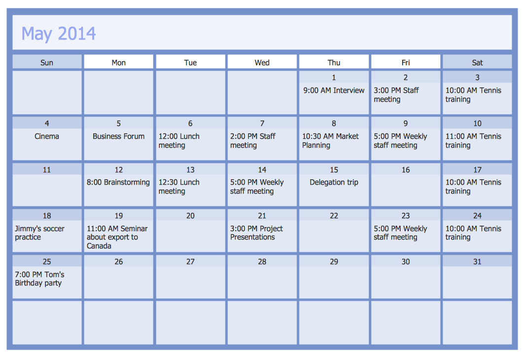 Samples of calendars are created using ConceptDraw DIAGRAM diagramming and vector drawing software enhanced with Calendars solution from ConceptDraw Solution Park.