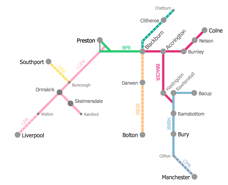 This example is created using ConceptDraw DIAGRAM diagramming software enhanced with Metro Map solution from ConceptDraw Solution Park.