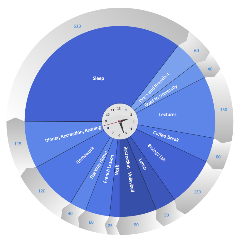 Target and Circular Diagrams sample: Schedule chart – Daily action plan.