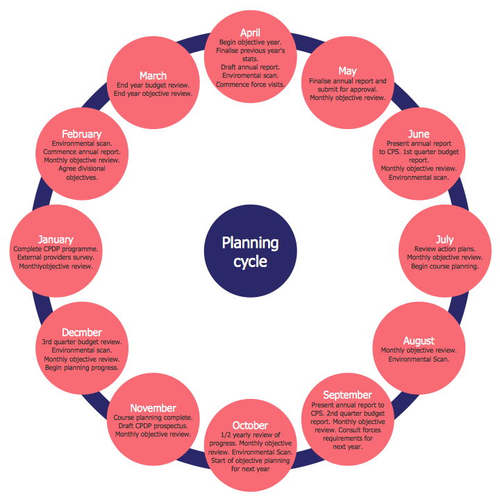 Target and Circular Diagrams sample: Circular diagram – Planning cycle.