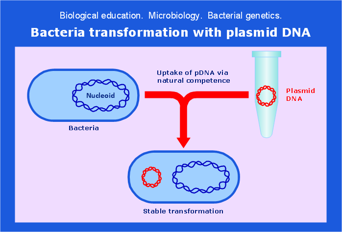 Microbiological educational diagram sample: Bacteria transformation with plasmid DNA.