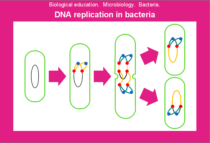 Microbiological educational diagram sample: DNA replication in bacteria.