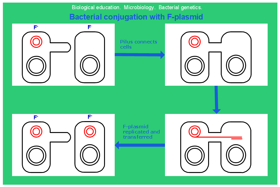 Microbiological diagram sample: Bacterial conjugation with F-plasmid.