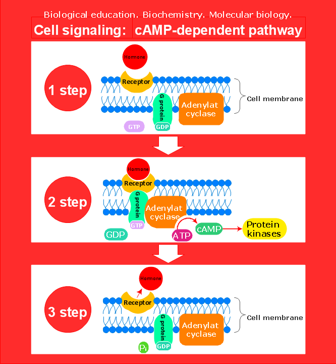 Biochemical diagram sample: Cell signaling: cAMP-dependent pathway.