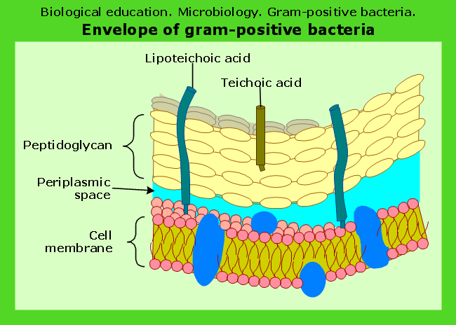 Microbiological educational diagram sample: Cell envelope of gram-positive bacteria.