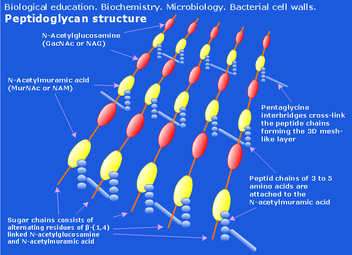 Microbiological and biochemical diagram sample: Peptidoglycan structure.