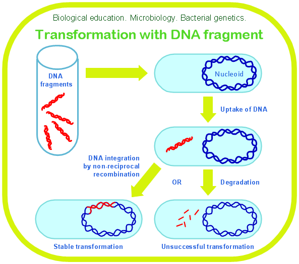Microbiological diagram sample: Bacterial transformation with DNA fragments.