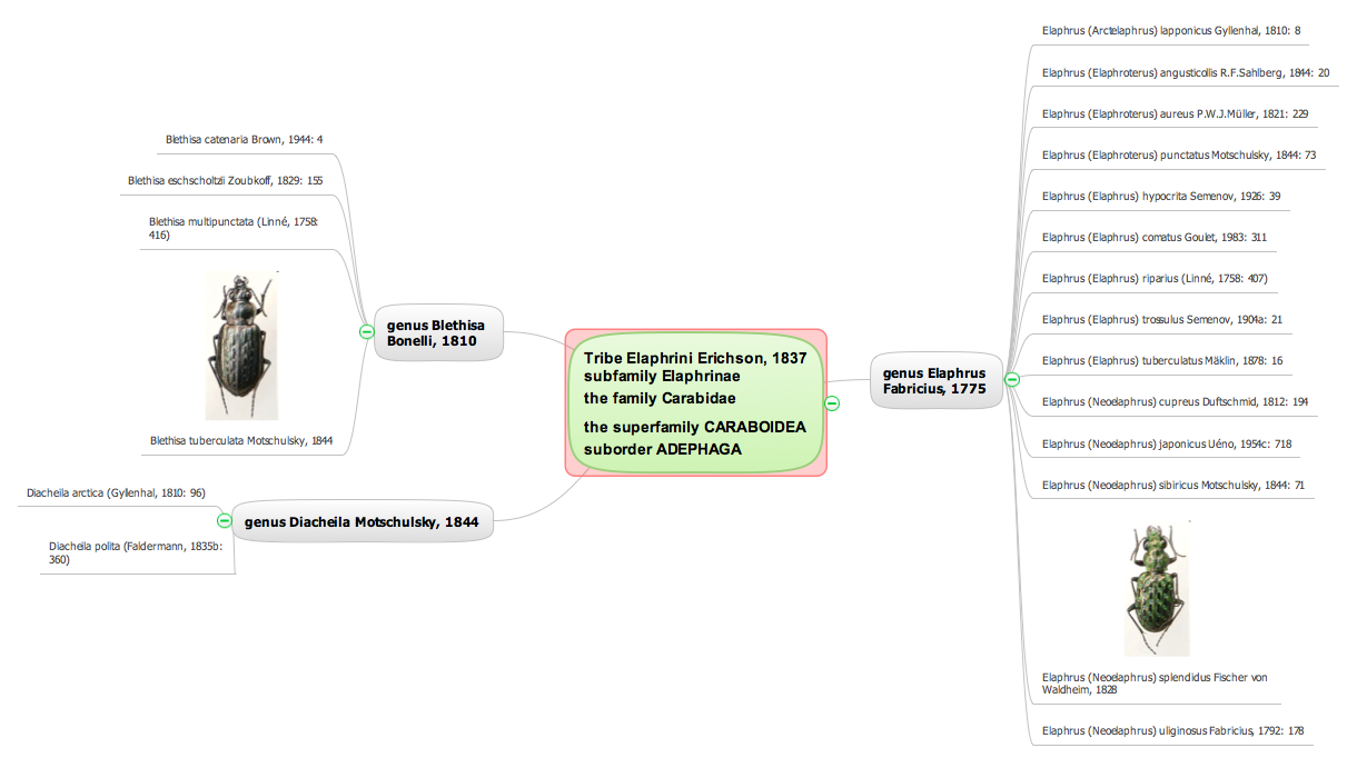 Mindmap sample: Bugs. Subfamily Elaphrinae. Tribe Elaphrini Erichson.