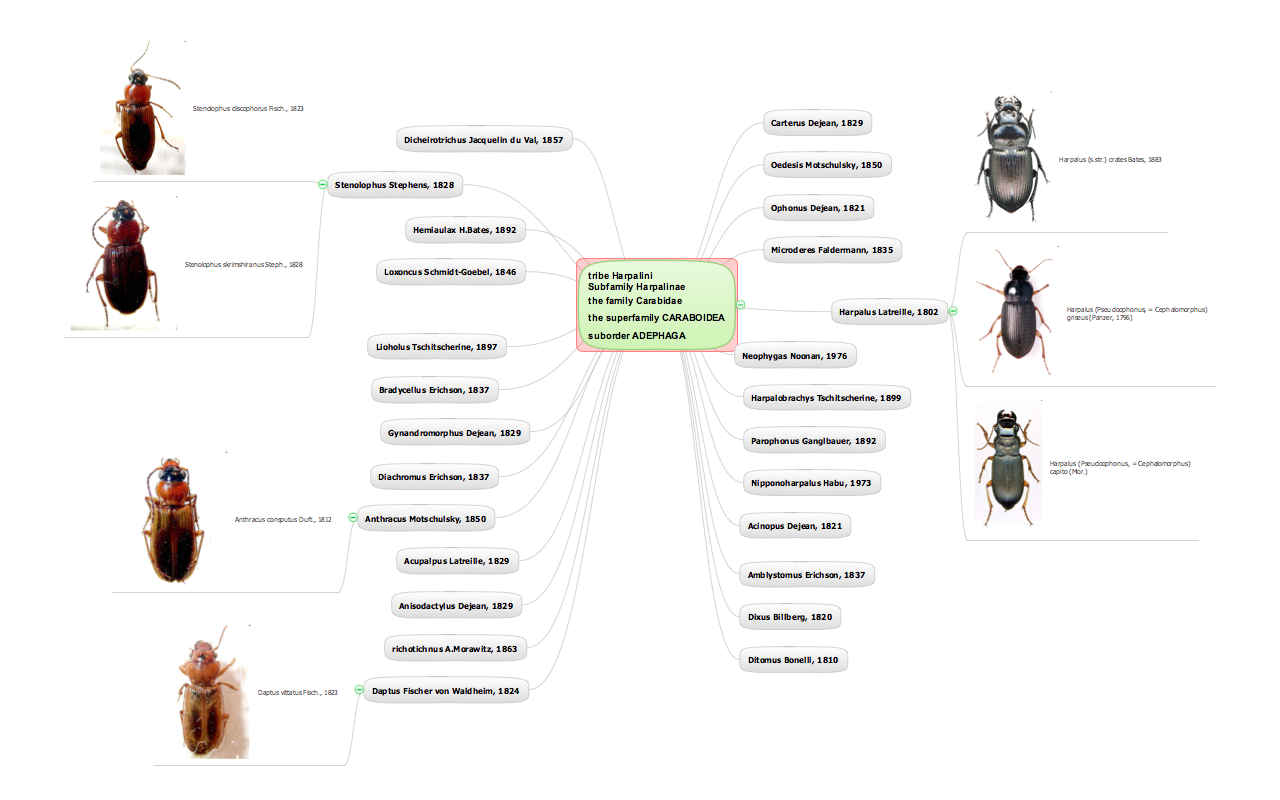 Mindmap sample: Bugs. Subfamily Harpalinae. Tribe Harpalini.