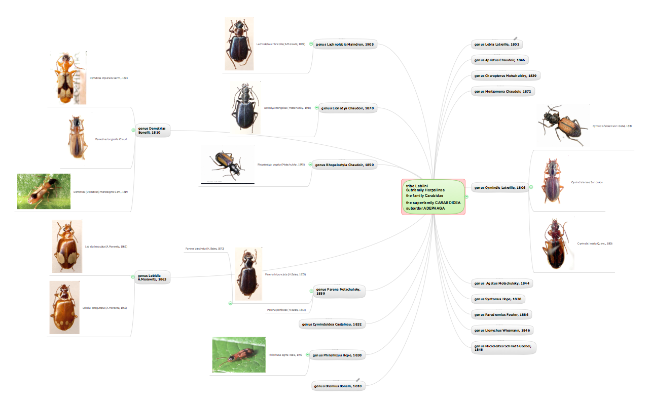 Mindmap sample: Bugs. Subfamily Harpalinae. Tribe Lebiini.