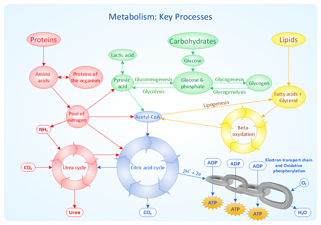Samples of scientific and educational diagrams, vector illustrations and mind maps on biology and biochemistry are created with ConceptDraw DIAGRAM diagramming and vector drawing software and ConceptDraw MINDMAP mind mapping software enhanced with Education solution from ConceptDraw Solution Park.