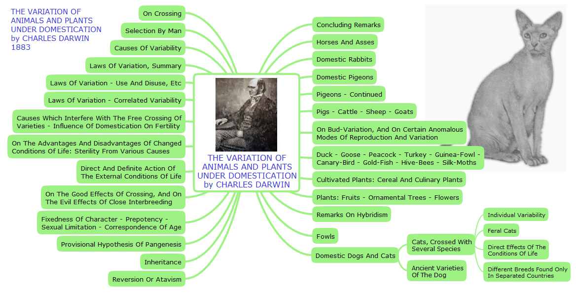 Mindmap sample: The Variation of Animals and Plants Under Domestication by Charles Darwin.