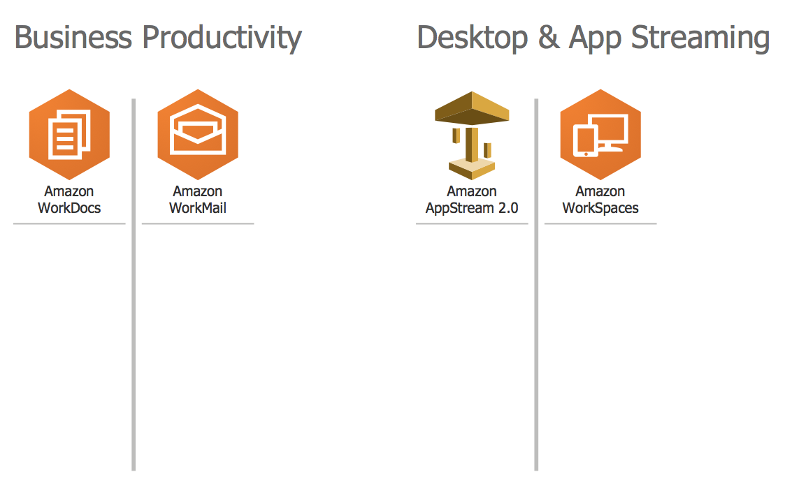 AWS Architecture Diagrams solution extends the ConceptDraw DIAGRAM software with powerful drawing tools, numerous predesigned Amazon icons and AWS simple icons for creation the AWS Architecture Diagrams, describing the use of Amazon Web Services or Amazon Cloud Services, their application for development and implementation the systems running on the AWS infrastructure. The multifarious samples of this solution will give you the good understanding of AWS platform, its structure, services, resources and features, wide opportunities, advantages and benefits from their use. Create easily the illustrative vector graphic diagrams on the base of included templates, which are essential and helpful when designing, description and implementing the AWS infrastructure-based systems. Use them in technical documentation, advertising and marketing materials, in specifications, presentation slides, whitepapers, datasheets, posters, etc.