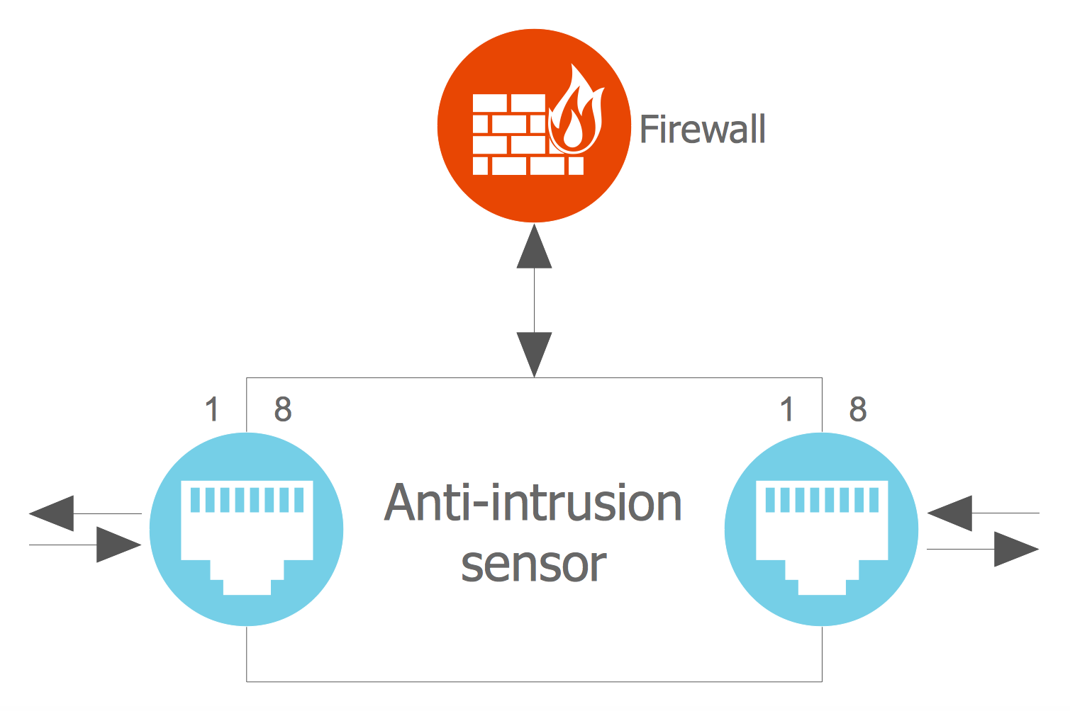 This example illustrates the architecture of an anti-intrusion sensor for the cloud computing. The use of Anti-intrusion System and Intrusion Detection System (IDS) is useful and even obligatory nowadays. The IDS is a kind of defense system that lets one detect any criminal activities in a network and actions that put the system's security under a danger, such as the hostile activities, hacking attempts, scanning of ports, security breaches, intrusions, hackers' attacks, insider attacks, and other attacks aimed at the computing and networking resources, as well as identify an intruder, reply correspondingly on these malicious activities with a goal to prevent their negative influence. Each ConceptDraw DIAGRAM user can find this sample at the ConceptDraw STORE and use it as a quick-start to design its own diagrams representing the processes related to networking and cloud computing. The vector objects from the solution's libraries will help you to cope with this task quickly and efficiently.