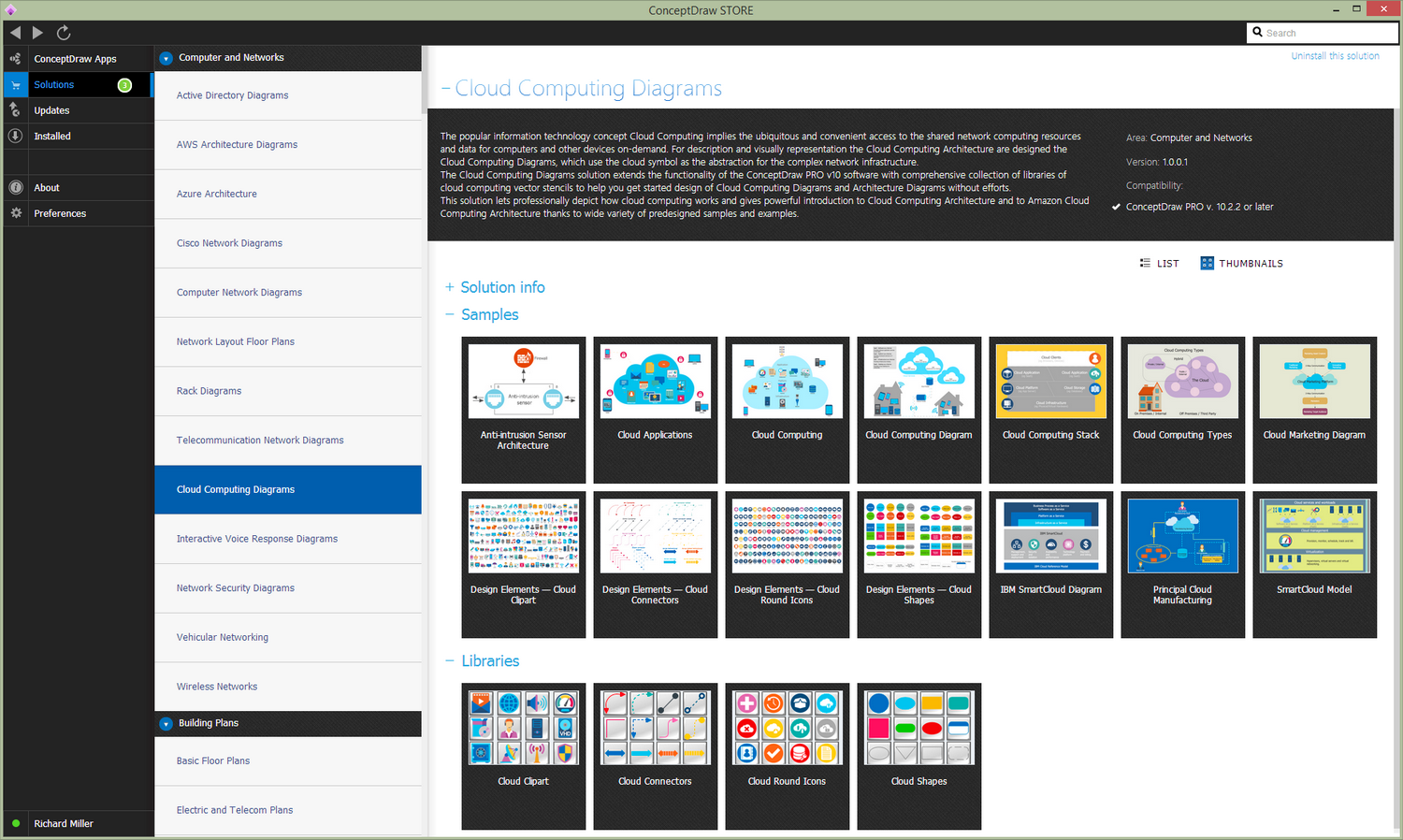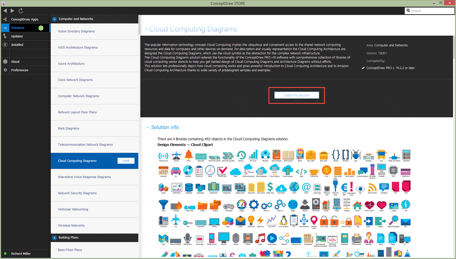 After ConceptDraw STORE and ConceptDraw DIAGRAM are downloaded and installed, you can install the Cloud Computing Diagrams solution from the ConceptDraw STORE.