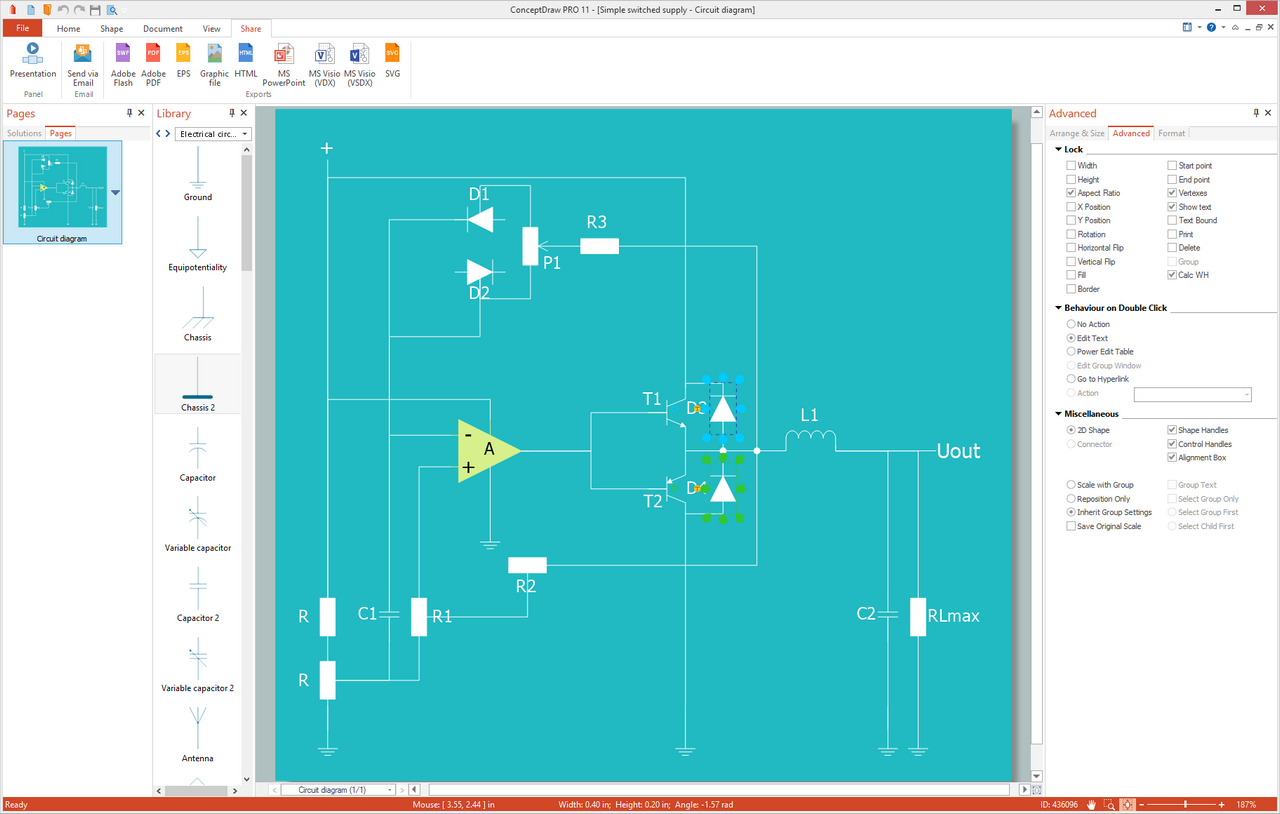 All source documents are vector graphic documents which are always available for modifying, reviewing and/or converting to many different formats, such as MS PowerPoint, PDF file, MS Visio, and many other graphic ones from the ConceptDraw Solution Park or ConceptDraw STORE. The Electrical Engineering solution is available to all ConceptDraw DIAGRAM users to get installed and used while working in the ConceptDraw DIAGRAM diagramming and drawing software.