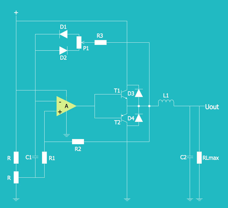 This sample visualizes the complex detailed scheme of an amplifier - an electronic device that increases the power of a signal. There are four basic types of electronic amplifiers: voltage amplifier, current amplifier, transconductance amplifier, and transresistance amplifier. ConceptDraw DIAGRAM allows you to draw the electrical schematic of each of them.