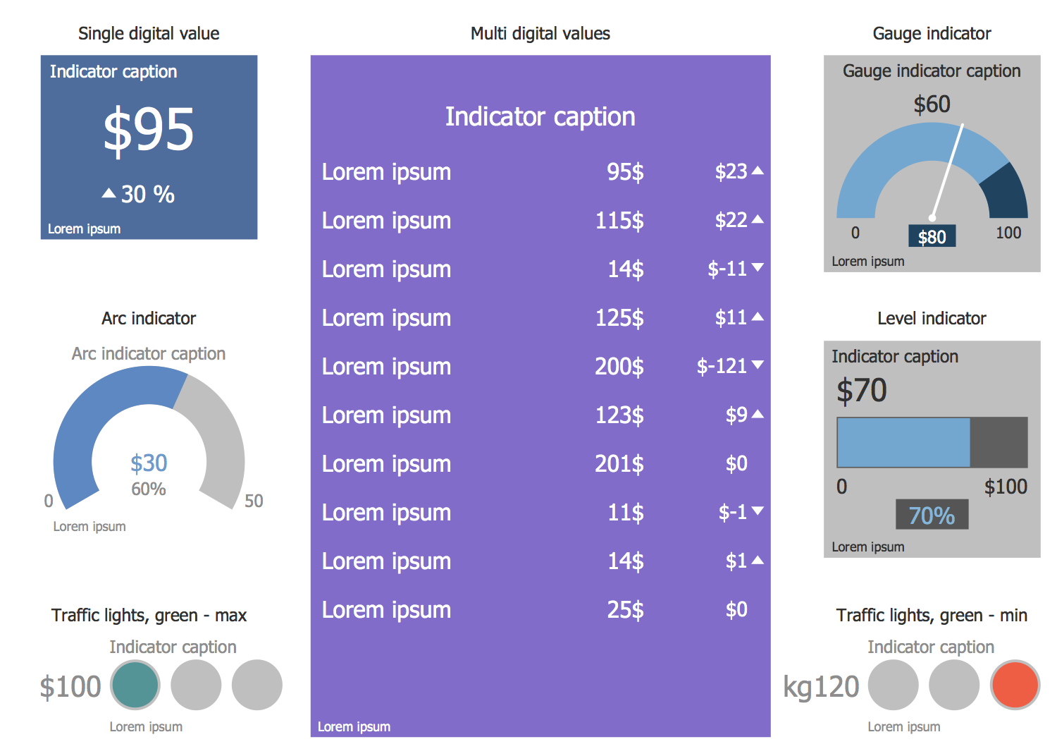 The CRM Center Dashboard solution extends ConceptDraw DIAGRAM functionality with powerful CRM tools, large collection of CRM Charts live objects, CRM icons, CRM indicators, CRM maps and navigation elements, which make ConceptDraw DIAGRAM the best CRM software. The set of professionally designed CRM samples and templates also included to the customer management software ConceptDraw DIAGRAM will help you construct your own CRM Dashboards and CRM Center Dashboards in a few minutes, to depict the current and actual data by connecting or refreshing the data source file. ConceptDraw DIAGRAM makes you free to choose the style for your dashboard and to regulate the quantity of clipart on the diagram according to your taste.