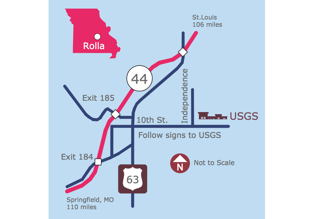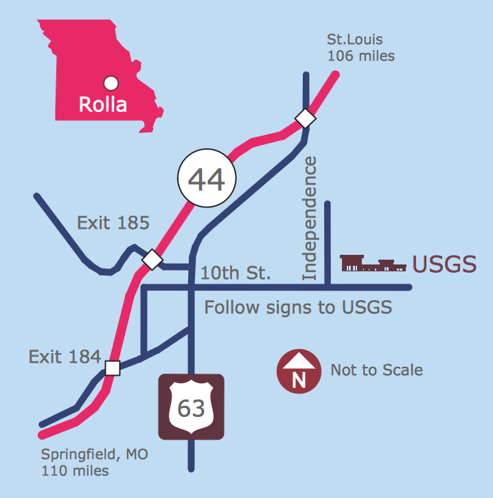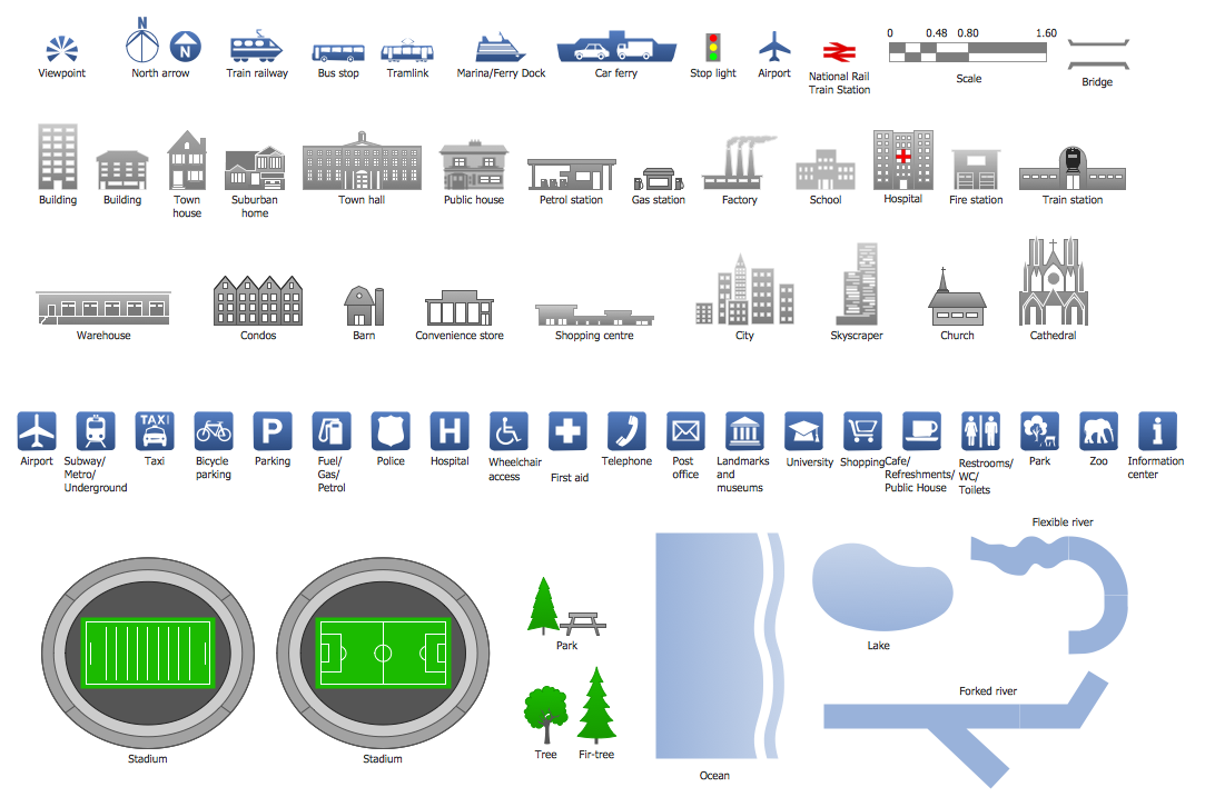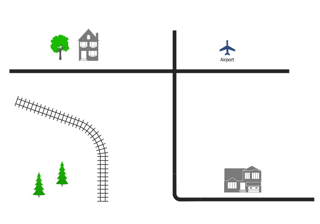 Road maps seem to be the most widely used ones nowadays, forming a subset of navigational maps. They may include both nautical and aeronautical charts, hiking and bicycling ones as well as the railroad network maps. Any of the mentioned maps can be also created in the ConceptDraw DIAGRAM diagramming and drawing software either from a scratch or by using the Directional Maps solution that extends ConceptDraw DIAGRAM with the pre-made examples and templates of the directional maps as well as the stencil libraries full of vector stencils which can be used for drawing the Directional Maps.