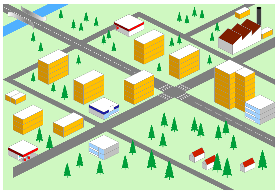 This sample illustrates a 3D directional map for navigation around the neighbor hood. Predesigned objects in ConceptDraw DIAGRAM will help you create beautiful, bright, and colorful directional maps and successfully navigate through all spheres of life activities.